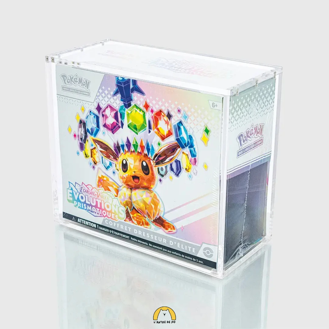 Protection et mise en valeur : Boîtier en acrylique transparent de haute qualité, conçu pour protéger et exposer élégamment vos ETB (Elite Trainer Box).